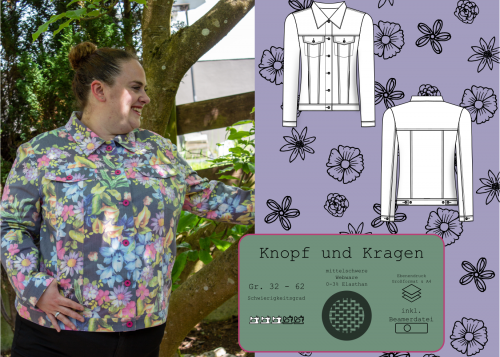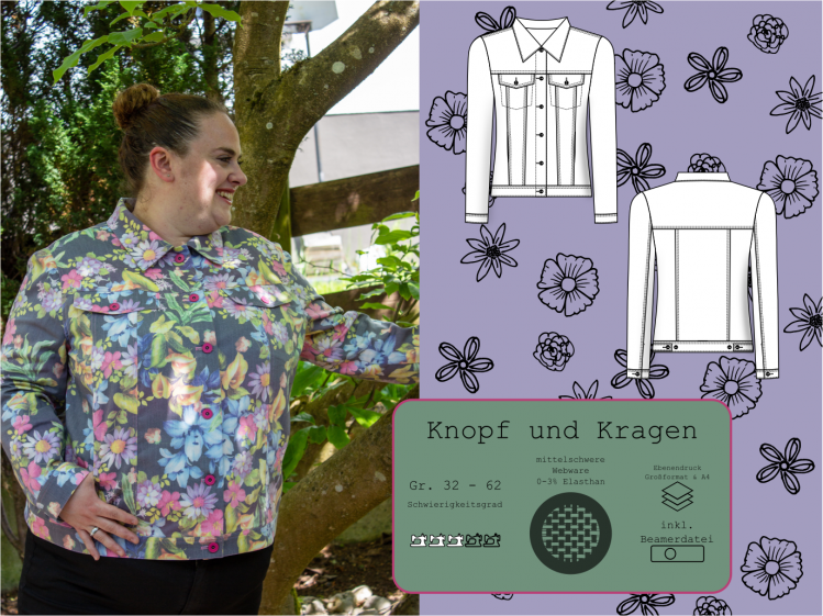 Manchmal fällt mir das Vorwort schwer, denn ich habe einen bestimmten Stil, den ich natürlich gerne trage und aufgrund dessen ich dann auch meine Schnittmuster erstelle. Also was soll ich sagen, meist verbinde ich mit meinen Schnitten ähnliche Attribute. Um mich nicht um Knopf und Kragen zu reden: Eine klassische Jeansjacke ist allzeit bereit, immer modern und super kombinierbar, so ist es einfach. Elemente wie Kragen, Brusttaschen und Eingriffstaschen, Ärmel mit Schlitzen und Manschetten dürfen da nicht fehlen.