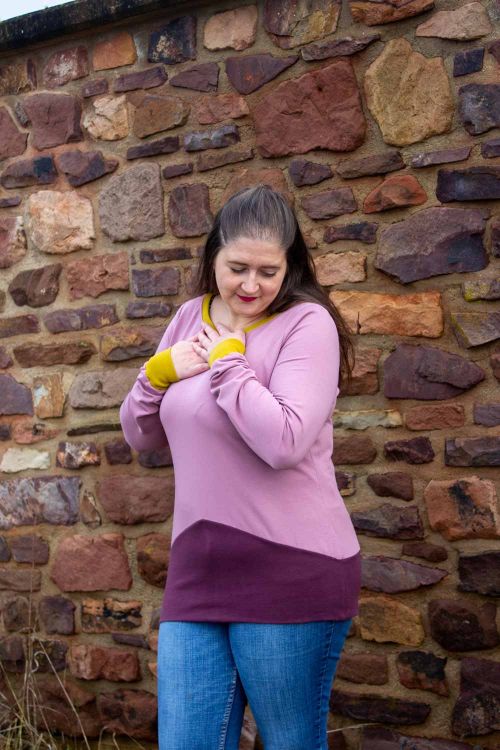 Dieser Schnitt für einen Pullover mit Rundhalsausschnitt der Richtung U-Boot-Ausschnitt geht, Ärmelbündchen mit und ohne Knopfleiste und eine asymmetrische und eine symmetrische Spitze im Vorderteil und dessen Saumbündchen, trägt den schönen Namen "Gipfel der Gemütlichkeit". Das Schnittmuster beinhaltet natürlich eine ausführliche Anleitung und die Damen Größen 32 - 62 und wird dir nach dem Kauf als Sofort Download in PDF Format zur Verfügung gestellt.