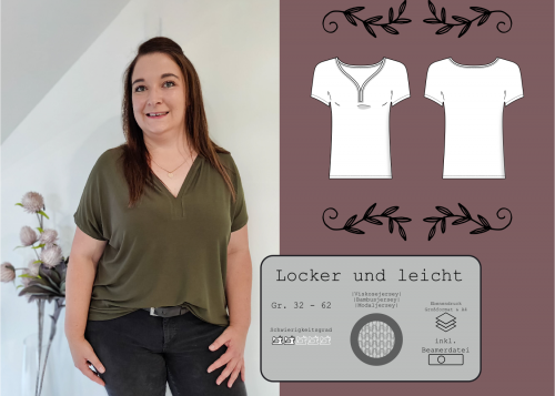 Zwei Attribute, die bei Kleidung nur so nach Sommer schreien: Locker und leicht. Und da bist du bei diesem Oversize-Shirt genau richtig. Der raffinierte Halsausschnitt verleiht dem Shirt das nötige Etwas, die Stoffauswahl sorgt für einen wunderbar weichen Fall und es ist super schnell zugeschnitten und genäht. Was will man mehr?