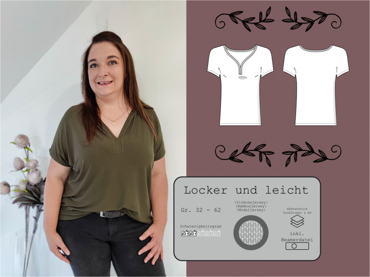• Als Material eignet sich Viskosejersey, Modaljersey, Bambusjersey, etc.. Den genauen Stoffverbrauch dazu, findest du in den Bildern