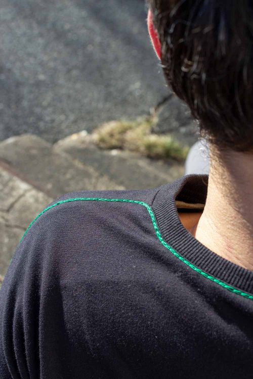 • Als Material eignet sich French Terry, Sweat und co., sowie Bündchenware für die Abschlüsse