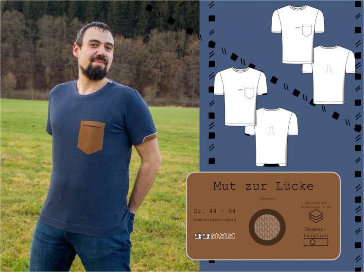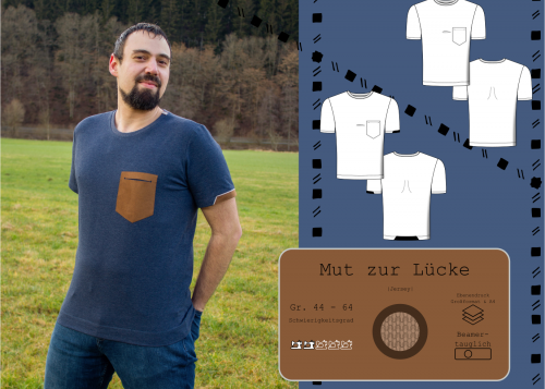 Hier ist der Name absolut Programm. Nicht nur wegen der Ausschnitte in Ärmel und Rückenteil, die sich detailreich füllen lassen, nein, auch weil ich euch wieder ein Schnittmuster für den Herren mitbringe. Ich finde nach wie vor, dass es zu wenig schöne Herrenschnittmuster gibt, zumindest nach meinem Geschmack und dem des Herren an meiner Seite. Hier kommt also für euch Mut zur Lücke mit kurzen Ärmeln und Rundhalsausschnitt, geradezu Basic und doch wieder mit dem gewissen Etwas.