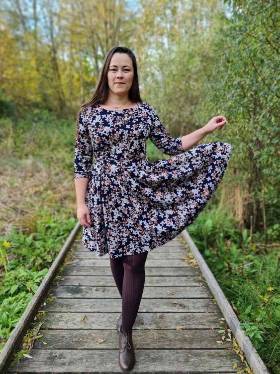 Zusammengefasst: Dieser Schnitt bietet dir ein Kleid, dessen Oberteil du mit kurzen Ärmeln, 3/4 Ärmeln mit oder ohne Bündchenabschluss oder ärmellos nähen kannst. Der Rock beinhaltet eine Shirt- & eine Kleidlänge und optionale Eingriffstaschen.