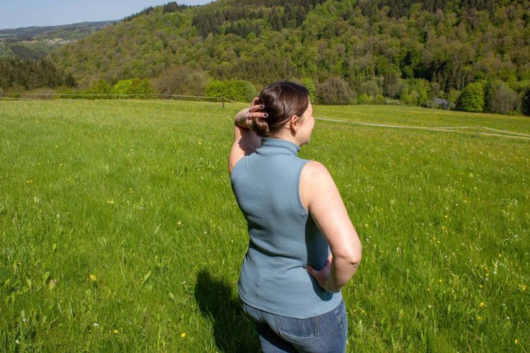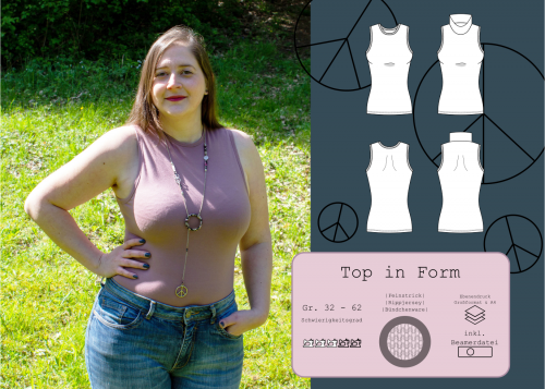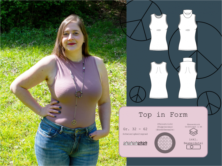 Jeder von uns wäre doch gerne Top in Form, gerade im Sommer. Vielleicht liest du das aber auch gerade und bist völlig zufrieden mit deiner Figur und deiner Fitness, dann gratuliere ich dir recht herzlich und freue mich für dich! Es soll hier auch nicht um Diäten oder Sport gehen, versprochen. Es geht um mein neues Top Schnittmuster, welches du aus den diversesten Stoffen nähen kannst und damit ein Basic für deine Sommergarderobe erschaffst, das sitzt, wie eine zweite Haut. Du hast die Wahl zwischen einem engen Rundhalsausschnitt oder einem Stehkragen. Gestylt mit einer Strickjacke ebenso ein absolutes Love-Piece für kühlere Abende.