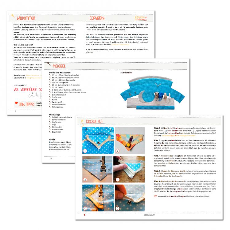 • zwei PDF-Dateien mit Schnittmuster und Nähanleitung, zum bequemen zu Hause ausdrucken