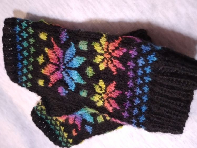 Strickanleitung für Handstulpen mit Daumenkeil in Fair Isle Technik.