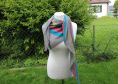 Material: Garn: Farbe A: Holst Garn Coast / grau (50g / 350 Meter) 2 Knäul, Wollreste in verschiedenen Farben, jeweils ca. 25g.