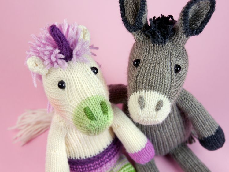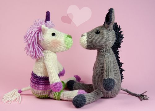 Sie sind ja sooooo verliebt: Einhorn-Mädchen Rudi und Rocky, der charmante Esel. Und weil die beiden untertrennlich sind, werden Sie wohl nicht umhinkommen, sie beide zu stricken! Obwohl die beiden denselben Grundaufbau haben, gibt es doch einige Unterschiede – und die sind natürlich alle in der Anleitung enthalten.