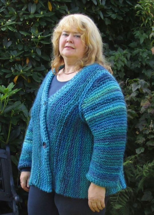 Die Anmore Chunky Weste & Jacke wird seitwärts von einer Seite zur anderen gestrickt, und zwar in einem Stück ohne den Faden neu anzusetzen. Die tolle A-Linie sieht auch bei „Moppelchen“ gut aus (ich bin selber eins).