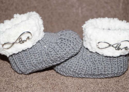 <p>Kuschlos....das sind niedliche Baby- Schühchen die nicht nur praktisch sind weil sie schnell angezogen werden können und die kleinen Füßchen kuschlig warm halten sondern fast genauso schnell gestrickt werden können.<br> Die Anleitung ist sehr einfach so dss auch Anfänger damit zurecht kommen. Außerdem wird der größte Teil der Schuhe auf 2 Nadeln gestrickt und nur das letzte Stückchen mit einem Nadelspiel.<br> Anhand vieler Bildern anschaulich erklärt wie die Schühchen gestrickt werden.<br> <br> Ich habe dafür weiche warme Baby Merinowolle mit 165 metern Lauflänge / 50 gramm verwendet und für den oberen Rand Kuschelwolle. Beides von der Firma Katia. Falls ihr diese benötigt dürft ihr euch gerne an mich wenden. Für ein paar Schuhe genügen schon ca. 20 gramm der Merinowolle. Außerdem wird in Nadelspiel der Größe 3 mm benötigt.<br> <br> Mit dieser Wolle verstrickt werden die Schuhe ca. 10 cm groß, passen also ca. das erste halbe Jahr.<br> <br> Ich wünsche allen viel Spaß beim stricken und natürlich mit den Schuhen</p>