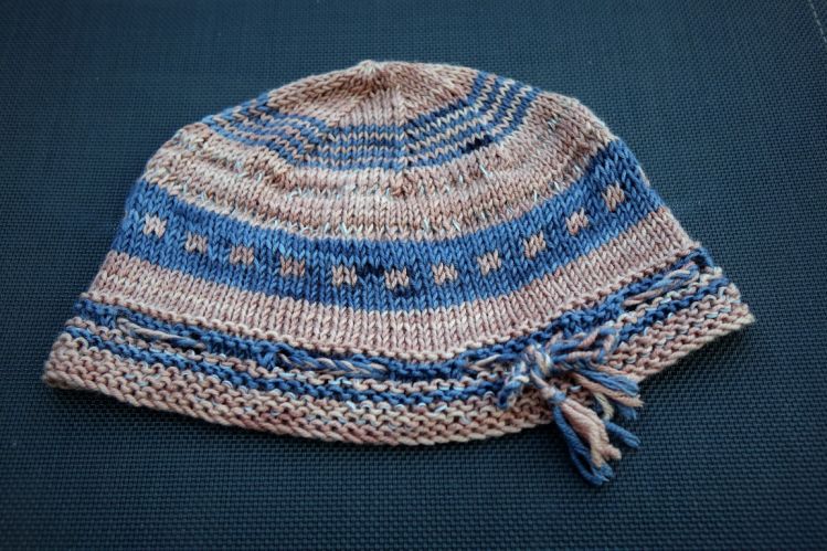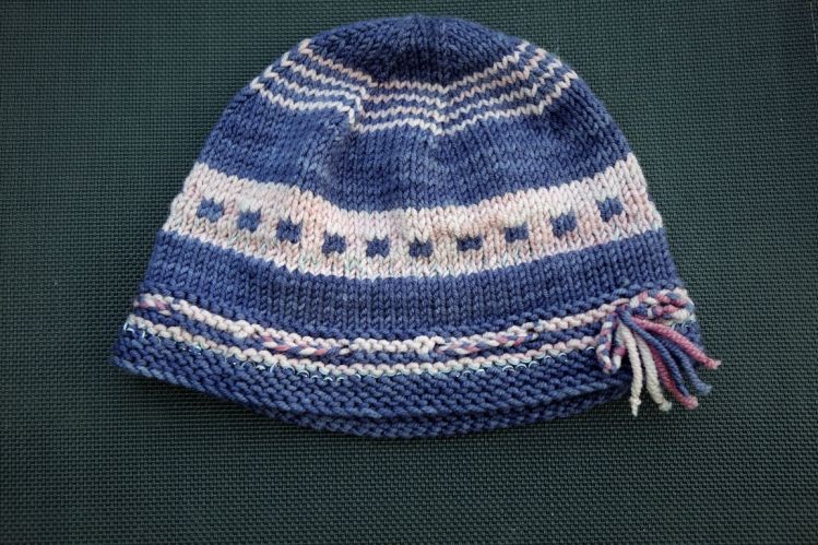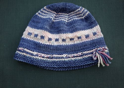 Das Muster ist ein leichtes hebemaschenmuster und Streifen der 2 Farben. Es ist ausgerechnet für einen Kopfumfang von 52cm aber Mapro ist zum umrechnen angegeben.