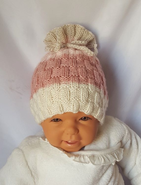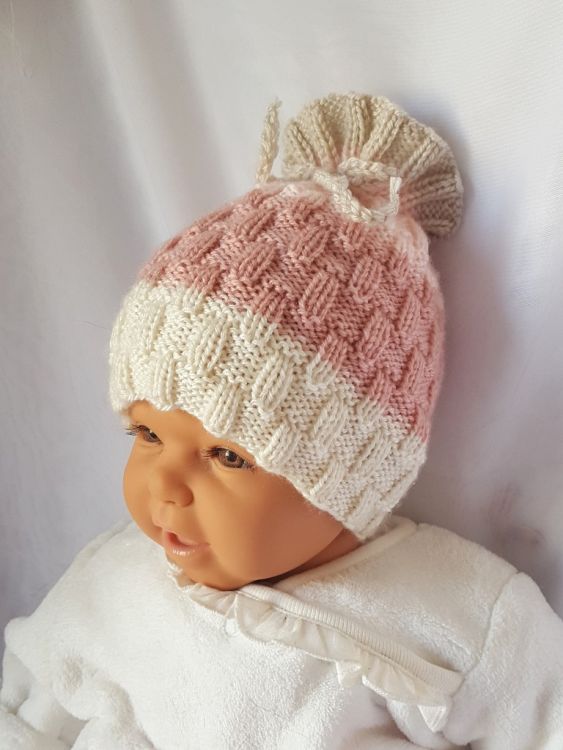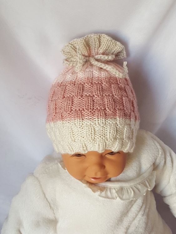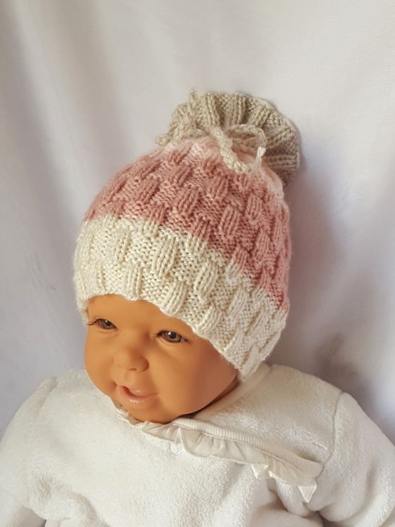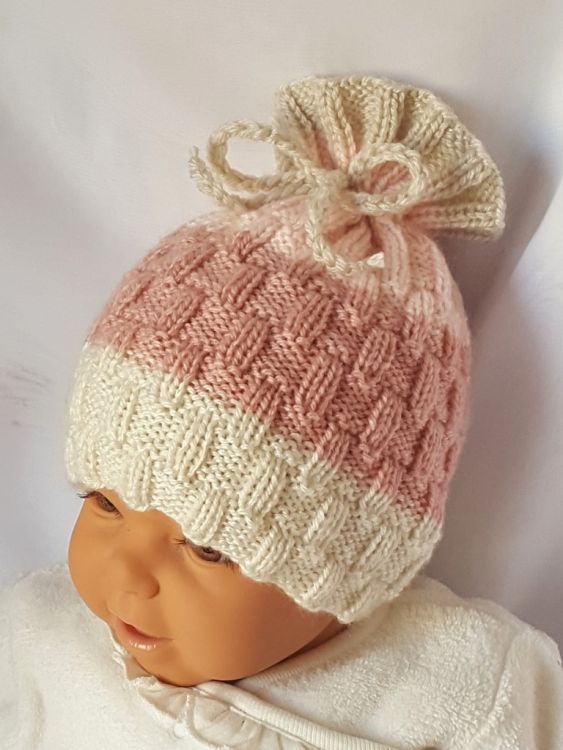 Die Mütze passt sich durch das Muster dem Köpfchen an und wächst eine zeitlang mit.