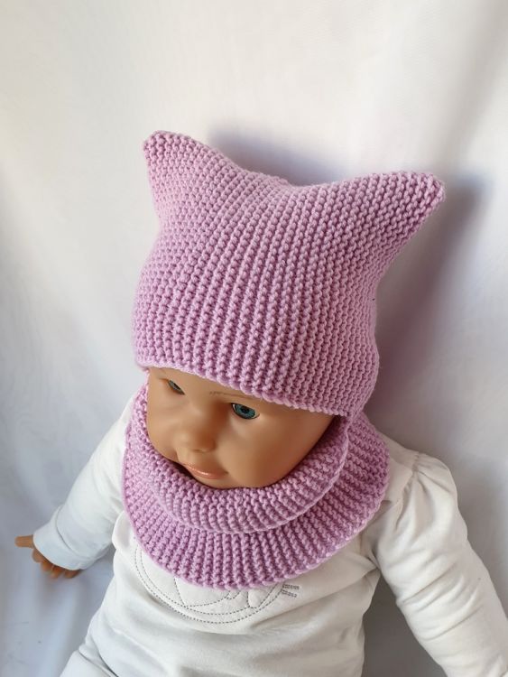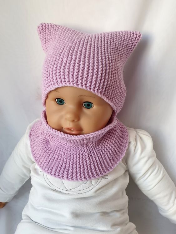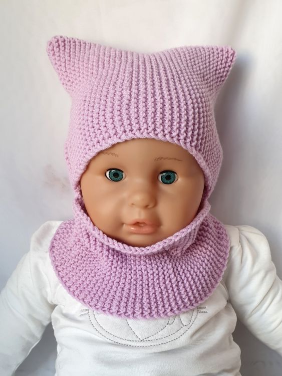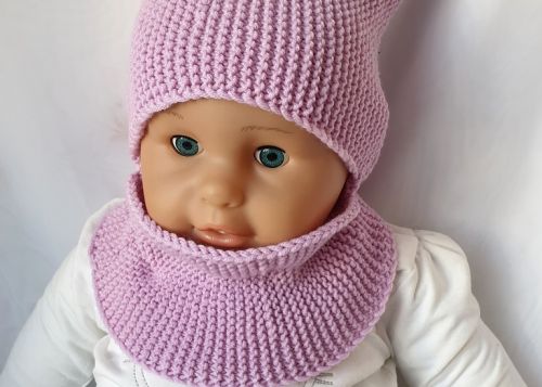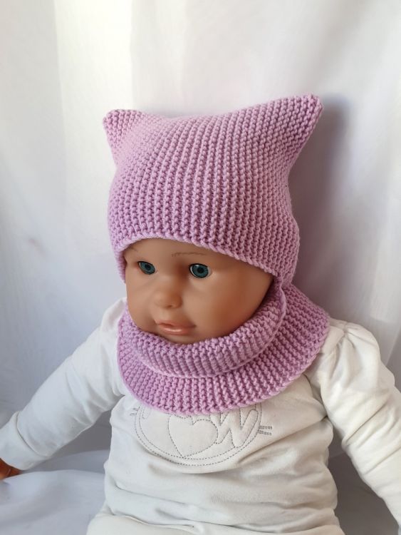 Die Schalmütze wird in einem Stück gestrickt und an 2 Seiten zusammengenäht. Die Schalmütze hält schön warm und auch die Ohren sind geschützt.
