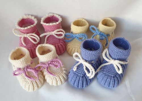 Ideal für alle, die mit dem Nadelspiel nicht vertraut sind, sind diese Baby-Schuhe, die mit 2 Nadeln gestrickt werden.