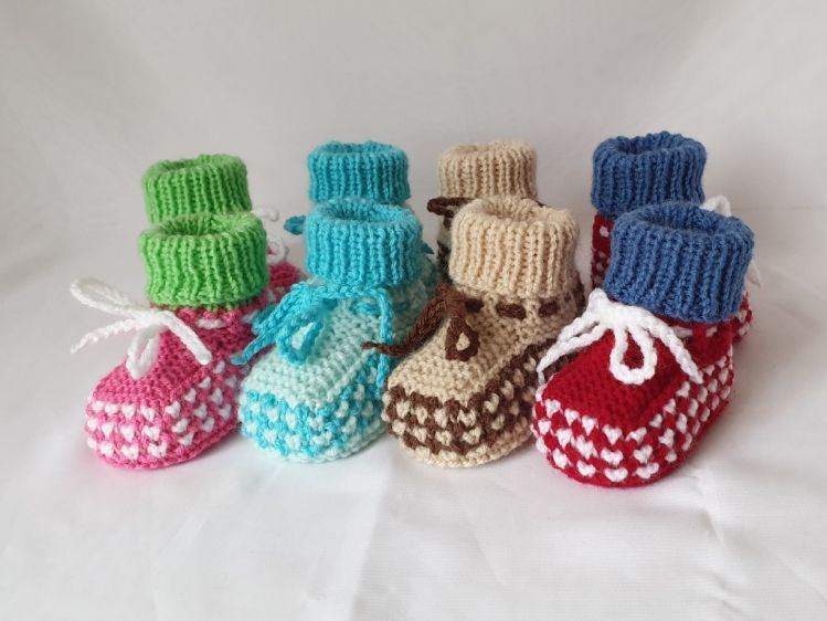 Strickanleitung Babyschuhe "Herzchen", Baby-Booties mit 2 Nadeln gestrickt