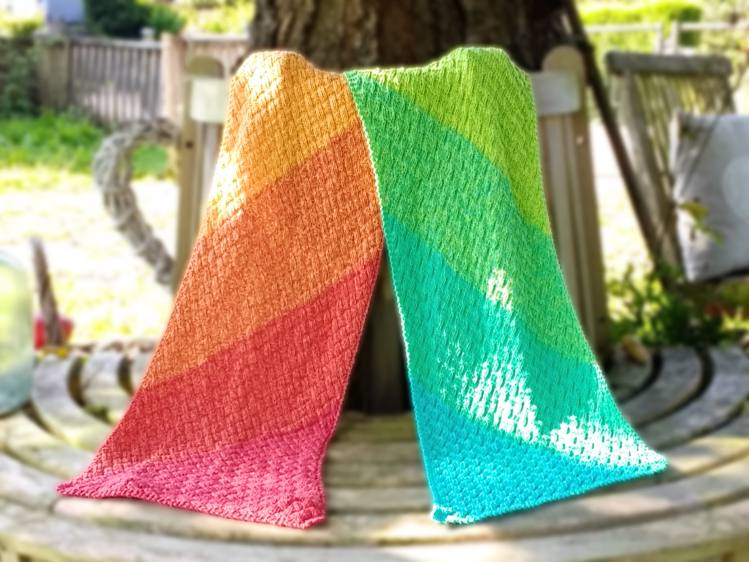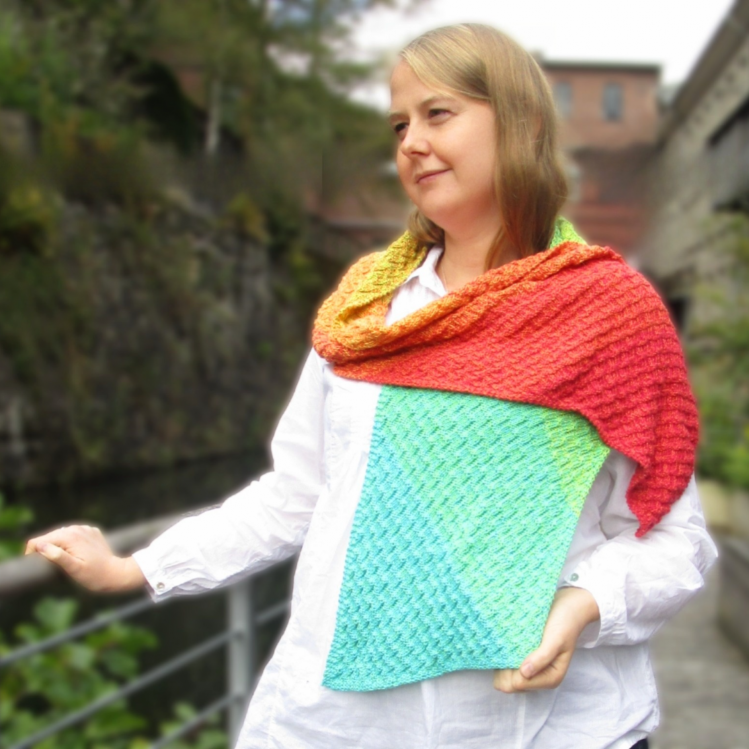 Sowohl ein Schal mit diagonalem Farbverlauf und Textur als auch ein einfarbiger Schal mit diagonal verlaufender Textur werden so ein echter Hingucker.