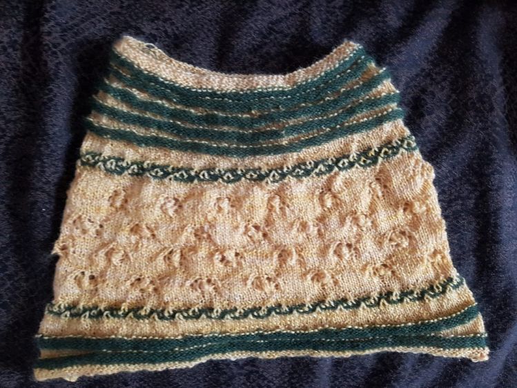 Dadurch das zwischendurch noch mal zugenommen wird, fällt der Cowl schön breit über die Schultern.