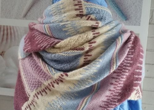 No matter whether the winter is sunny and clear, with snow and blizzard, or shaded in Grey - generously sized “Winter Shawl” in calming colors is cozy and good to snuggle into.