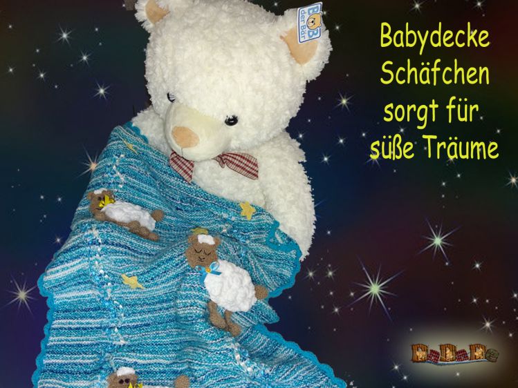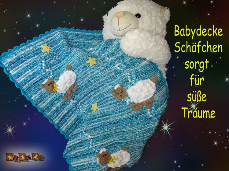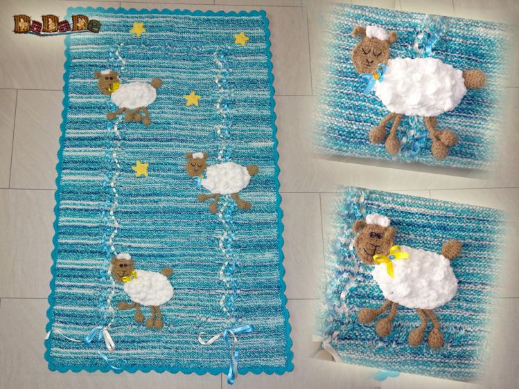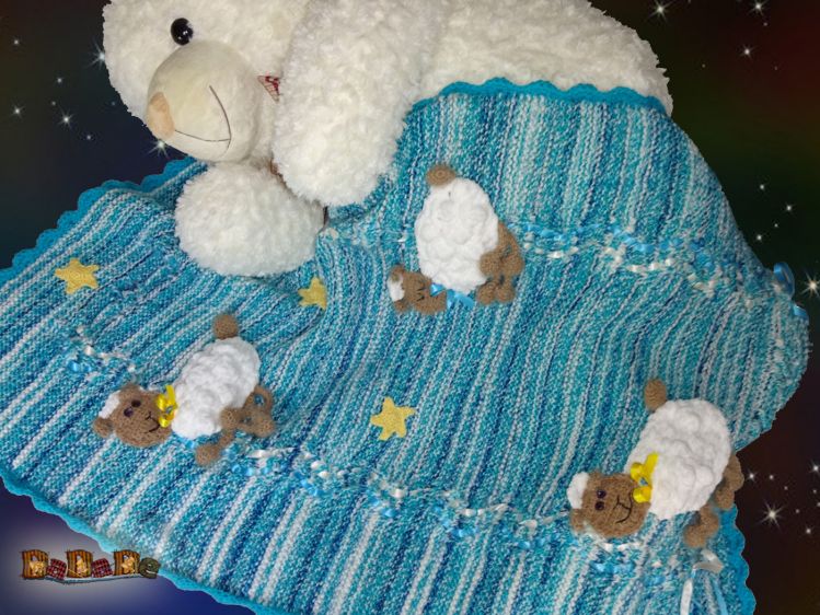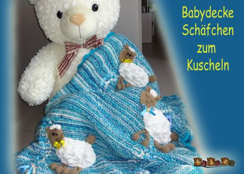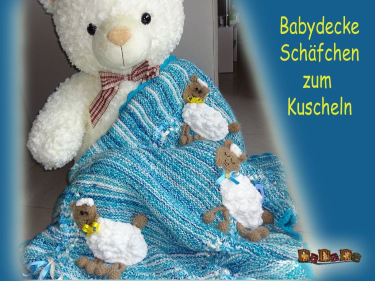 Baby-Decke mit Schäfchen, gestrickt und gehäkelt von Dadade