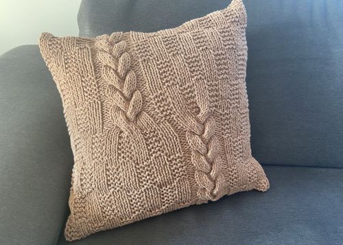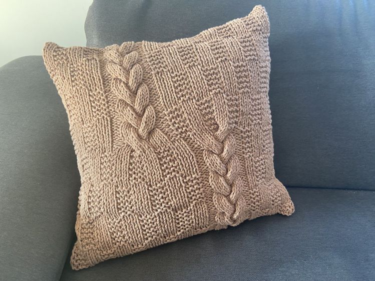Die Kissenhülle „Dublin“, mit zwei Dreifachzöpfen und schönem Rechts-Links-Muster, ist ein schönes Accessoire auf jeder Couch - egal in welcher Farbe.