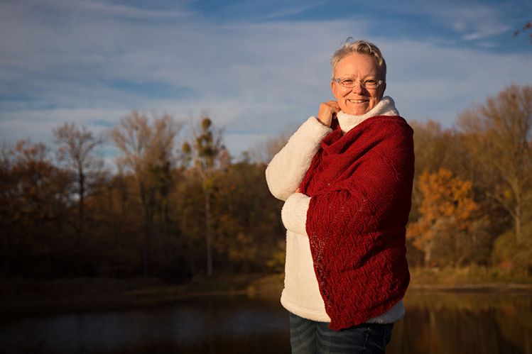 Eine Diallele ist ein Kreis- oder ein Zirkelschluss – und genau dies tun die Maschen in dem Diallele Tuch. In diesem Muster bilden die Maschen nebeneinander liegende Kreise. Eine Kante des Tuches säumt eine Borte des Diallele-Musters. Die restliche Fläche des Tuches wird durch Reihen von Kreisen immer wieder durchbrochen.
