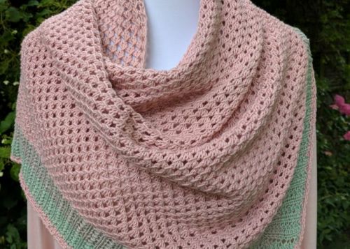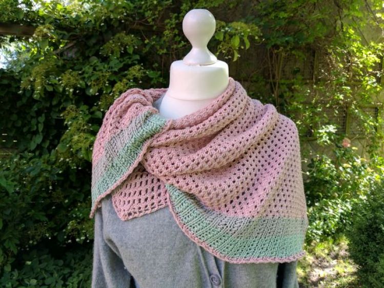 Das Tuch Florentine geht flott von der Nadel. Das Tüllmuster ist einfach zu stricken und der Erfolg schnell sichtbar. Es ist nicht zu groß und toll, um Pullover oder Blusen aufzupeppen. Der Glanz des Garns gibt dem Tuch einen edlen Touch.