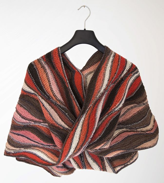 Die Idee zu dem Dünenmeer-Loop ist in einem Urlaub in Namibia entstanden. Das unendliche Meer der Sanddünen der Namib waren der Anstoß für das Muster – und das Garn Nordlys von Viking liefert ganze die Farbpalette der roten, der weißen und der Stein-Namib.