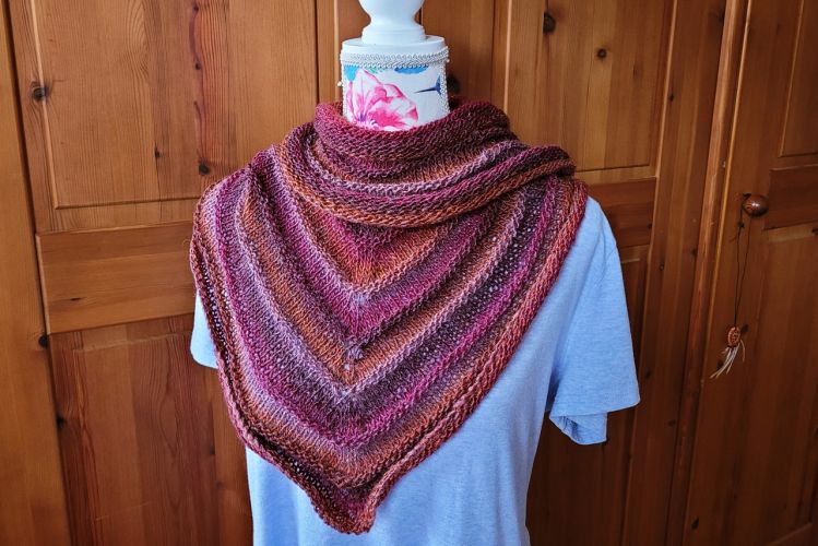 Ein schönes Farbverlaufsgarn, eine Stricknadel und dazu meine Anleitung. Und schon kannst du dir einen ganz persönlichen Loop stricken, der nach vorne hin mit einer kleinen Spitze ausgestattet ist.