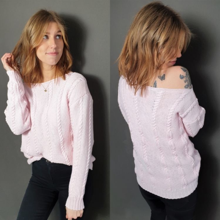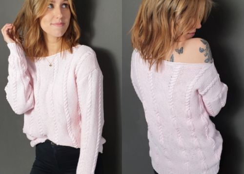 Strickanleitung Pullover Wendepullover Zopfmuster Rosa