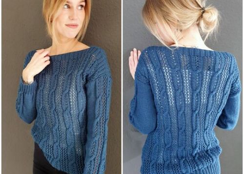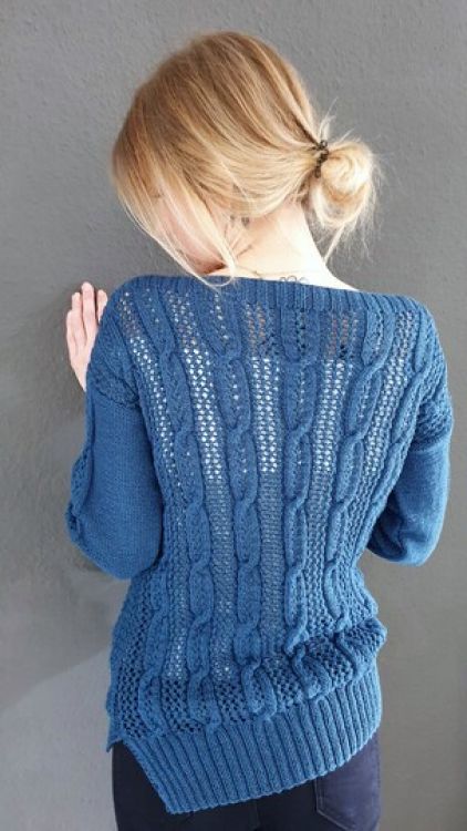 192 Strickanleitung Pullover Loch und Zopf Romina