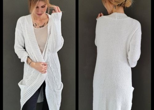 Diese lässige Strickjackjacke habe ich in 3 Oversize Größen geschrieben.