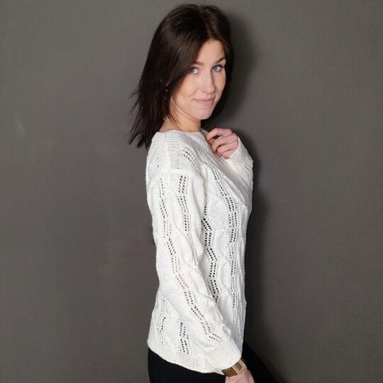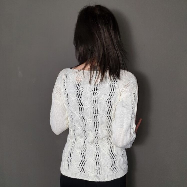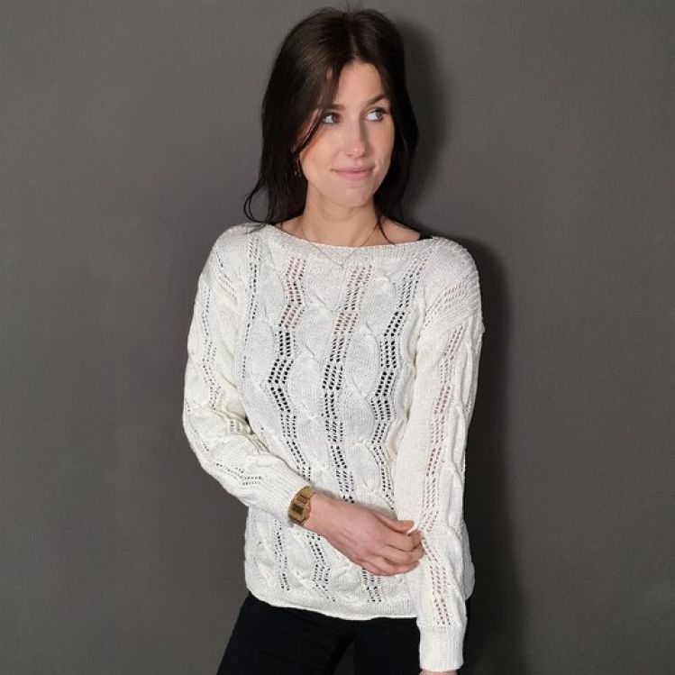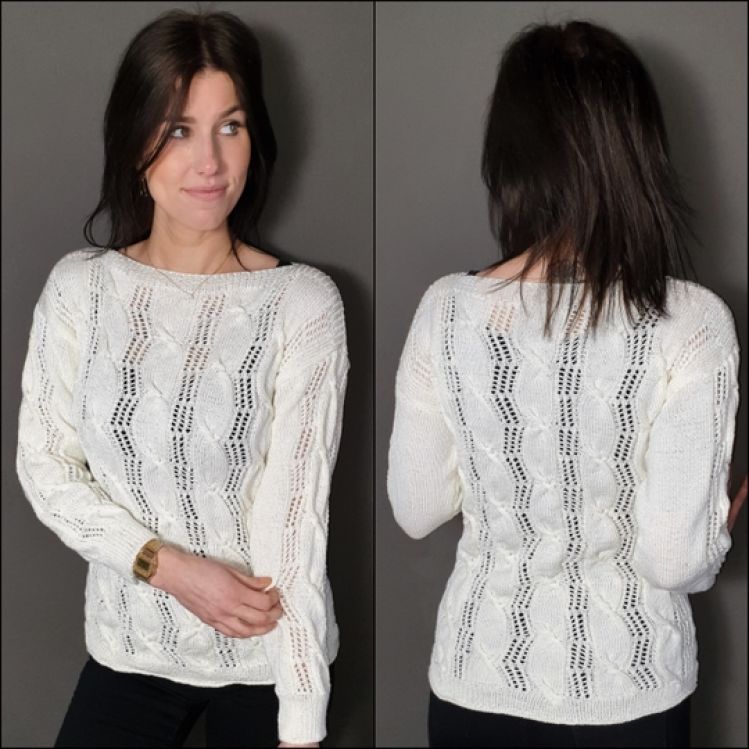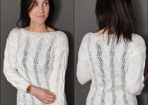Hier könnt Ihr einen edlen Pullover mit Lochmuster und Zopfmuster gemischt nacharbeiten.