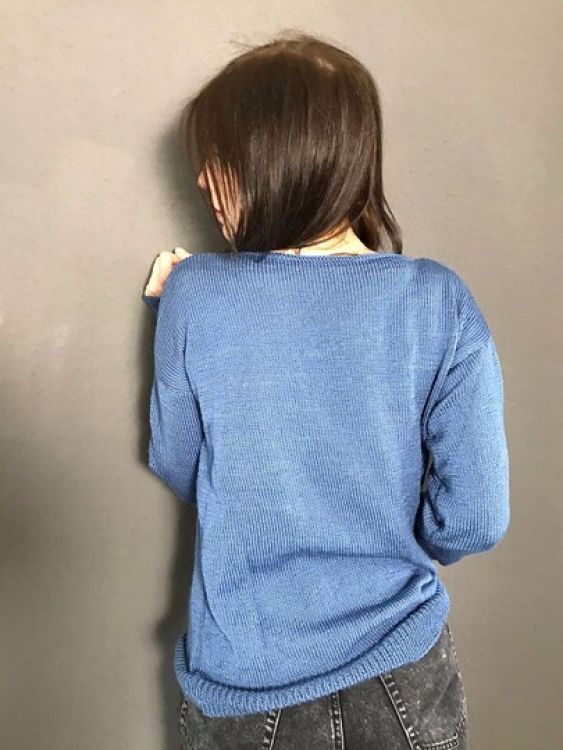 Der Pullover kann leicht verkleinert oder vergrößert werden, indem Sie die Maschen an den Seiten verändern.