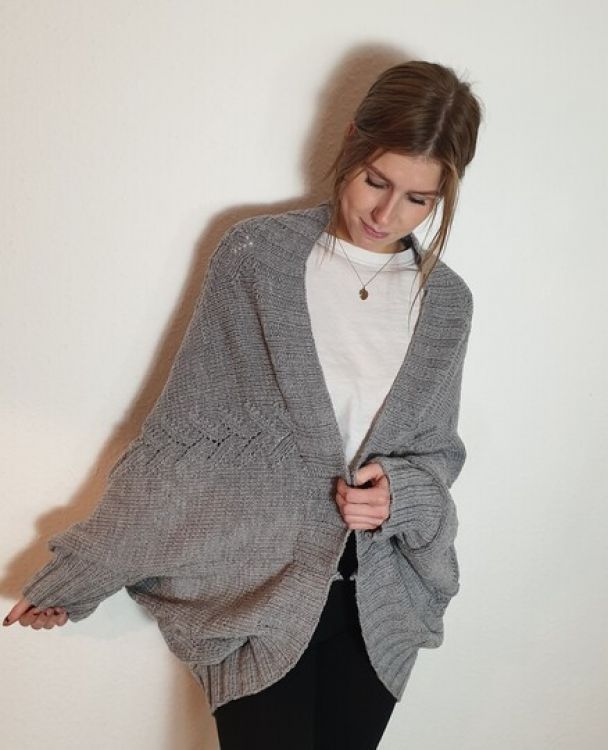 Wer den Seelenwärmer sehr weit mag, kann Ihn gleich in der großen Version stricken.