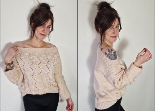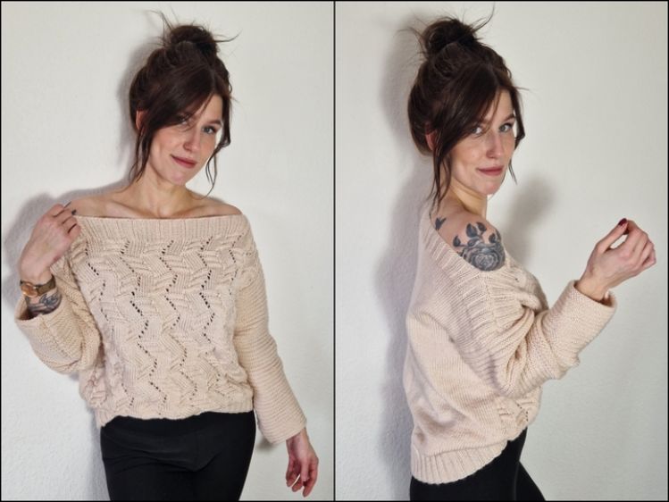 Wer den Pullover weit mag, kann die größere Variante wählen.