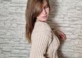 Das Modell hat Größe 36 und bei Ihr sitzt der Pullover locker.