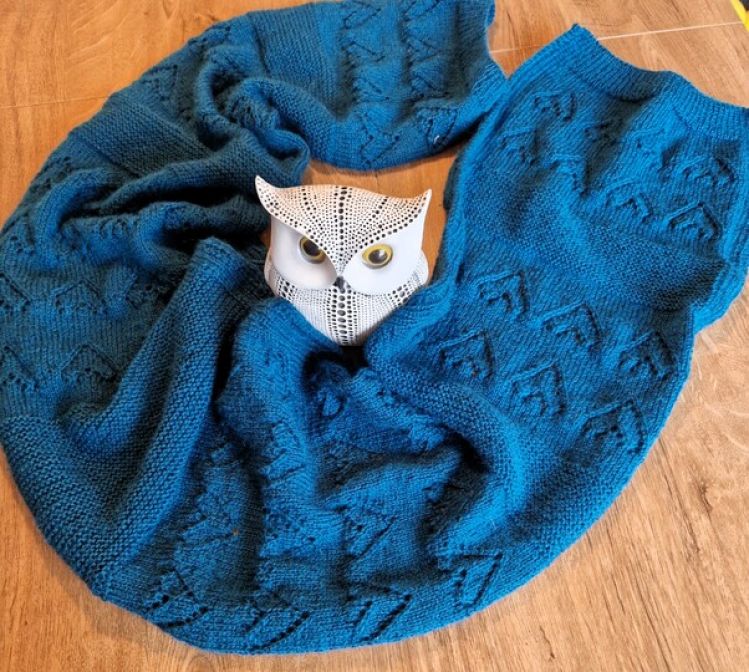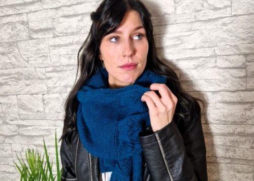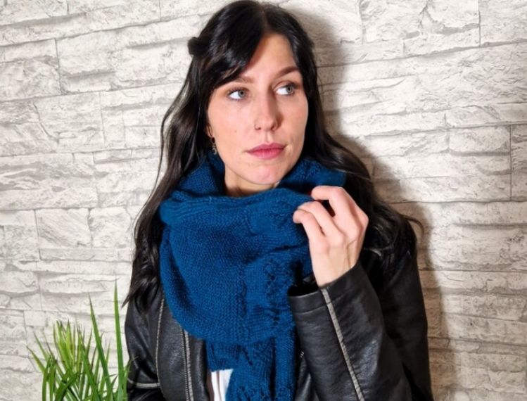 Der Schal hat eine Länge von 165 und eine Breite von 33 cm.