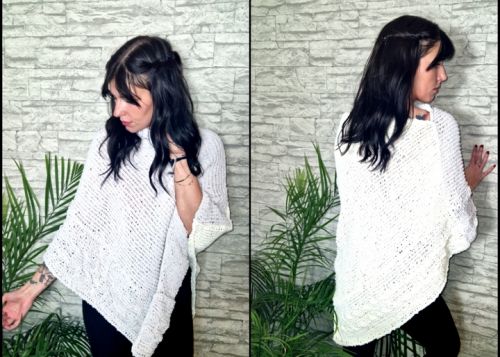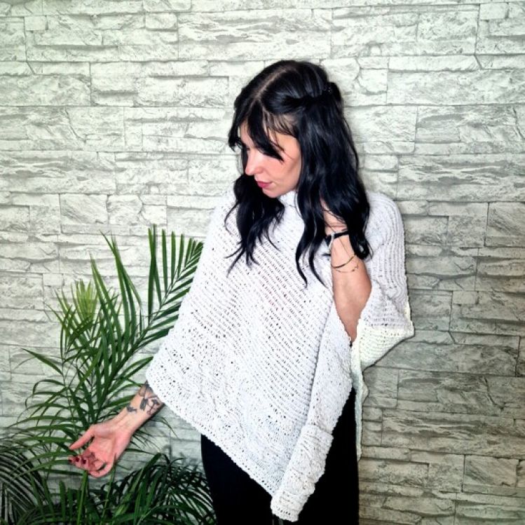 Strickanleitung Poncho Kuschelteilchen mit Zopfmusterborde Sie können hier einen kuscheligen Poncho in einer Universalgröße 34/44 nacharbeiten. Die Anleitung ist leicht nachzuarbeiten. Die Anleitung ist Schritt für Schritt erklärt. Viele Anleitungsbilder, Skizzen und Mustertabelle. Die Anleitung ist leicht nachzuarbeiten. Größenangaben Universalgröße 34/44. Benötigte Materialien Sie benötigen: Stricknadel Nr. 6 von 60 cm Häkelnadel Nr. 6 Myboshi Samt XS CASHEW 200g Myboshi Samt XS MARSHMALLOW 200g Vernähnadel und Schere
