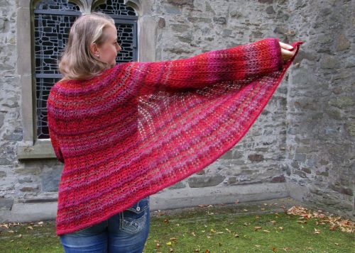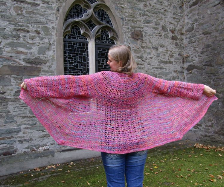 Columbine hat das Zeug zum Lieblingsstück, das man immer und immer wieder strickt. Ob als Weste oder Jacke, es könnten sich bald durchaus mehrere Columbinen in deinem Schrank finden. Das Lochmuster ist viel einfacher als es aussieht, man muss nur in jeder vierten Reihe „Löcher“ stricken. Die anderen drei Reihen werden dann einfach glatt rechts gestrickt. Dadurch ist die Weste oder Jacke schnell gestrickt und erfordert nicht ständig die volle Aufmerksamkeit bis zur Fertigstellung. Die Jacke mit Rundpasse wird von oben nach unten gestrickt.