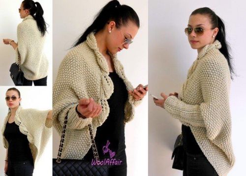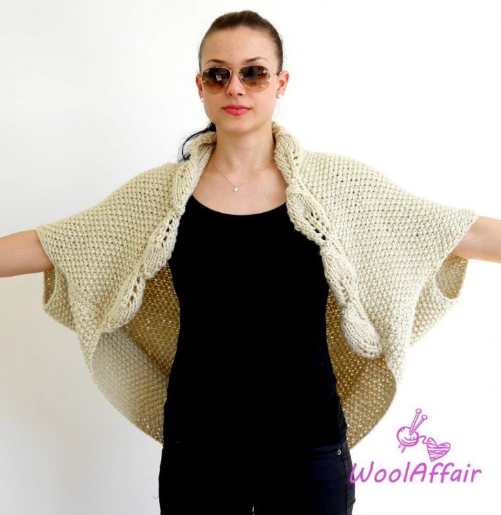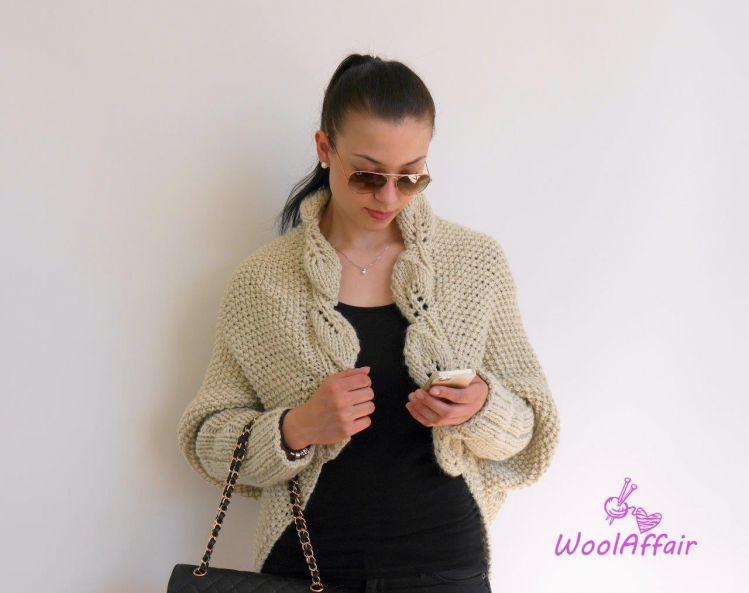 Oversized Leaves Cocoon Cardigan – Blätterrand Strickjacke mit + ohne Ärmel