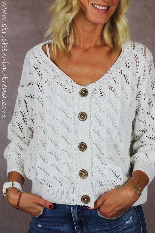 Diese charmante Weste mit lockerem Schnitt, tiefem V-Ausschnitt und auffälligen Knöpfen ist nicht nur ein Hingucker, sondern auch ein echtes Lieblingsstück zum Selberstricken.