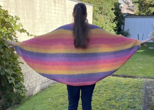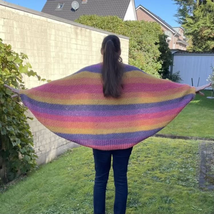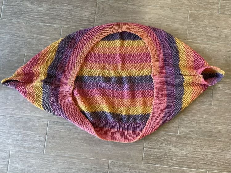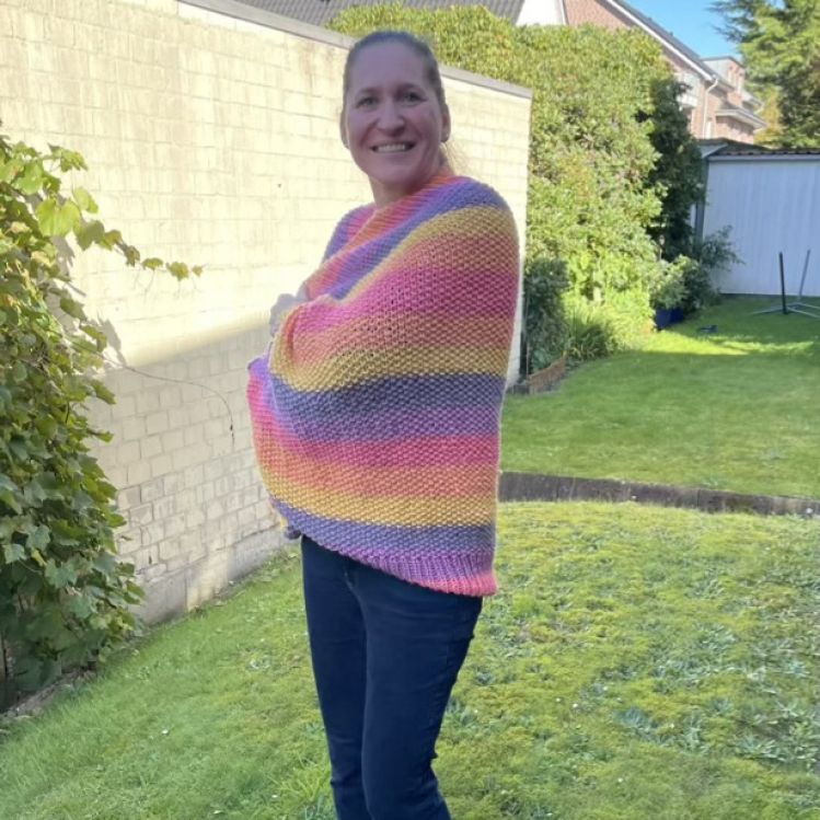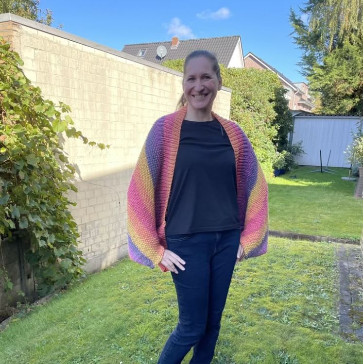 Gestrickt wird ein großes Rechteck in Reihen, das am Ende zusammen gehäkelt wird.