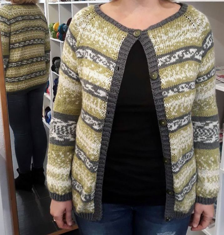 Die Jacke wird als Raglan von oben, auch bekannt als RVO gestrickt.