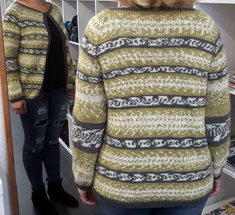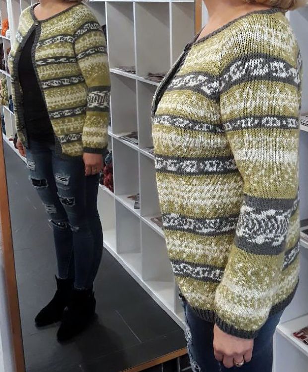 Ich habe die Jacke in Größe 38/40 gestrickt, so ist auch die Anleitung geschrieben.