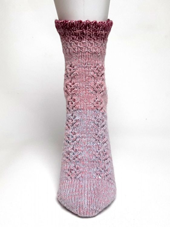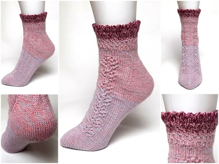 Teil 1: 5. Juni 2020, die Spitze, der Fuß bis Fersenbeginn, wahlweise mit Muster oder ohne, Größentabelle mit den Angaben zu den Zu- und Abnahmen, Textanleitung (Rundenweise, Video und Strickschrift)