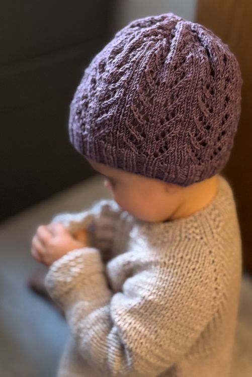 Bei der Anleitung handelt es sich um eine Mütze mit einem einfach Lacemuster. Es gibt zwei Größen, 9-12 Monate und 1-2 Jahre. Die Mütze wird in Runden gestrickt und benötigt eine Garn mit der Stärke 170m auf 50 g. Benötigt wird, je nach Größe zwischen 30 und 50 g. Gestrickt wird in Runden mit einem 2,5 und 3,0 Nadelspiel oder auf einer Rundstricknadel, na ja Wunsch. Maschenprobe beträgt beim Rippenmuster (2re 2li) 30 M und 38 R.