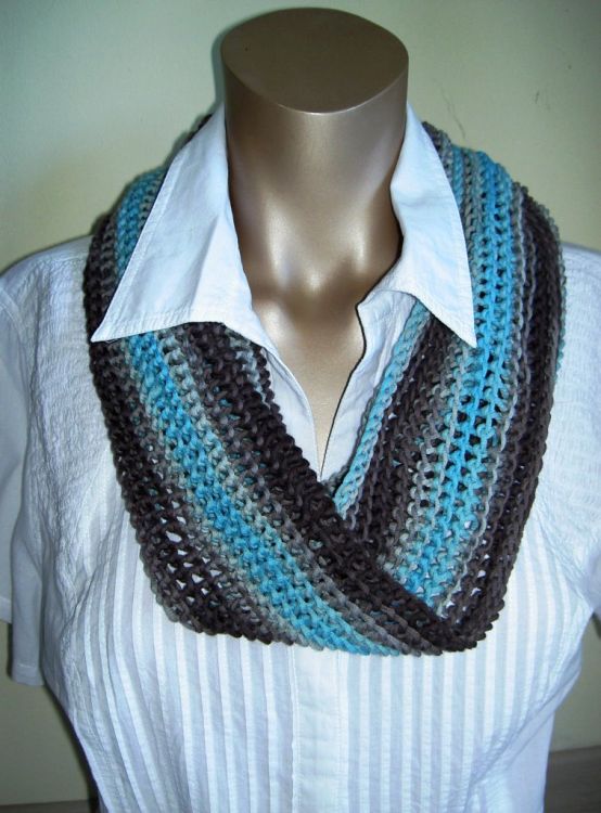 Strickanleitung Loop aus 100 g Bändchengarn Für diesen Loop werden lediglich 100 g Bändchengarn mit einer Lauflänge von ca. 200 m / 100 g benötigt. Für Anfänger geeignet.