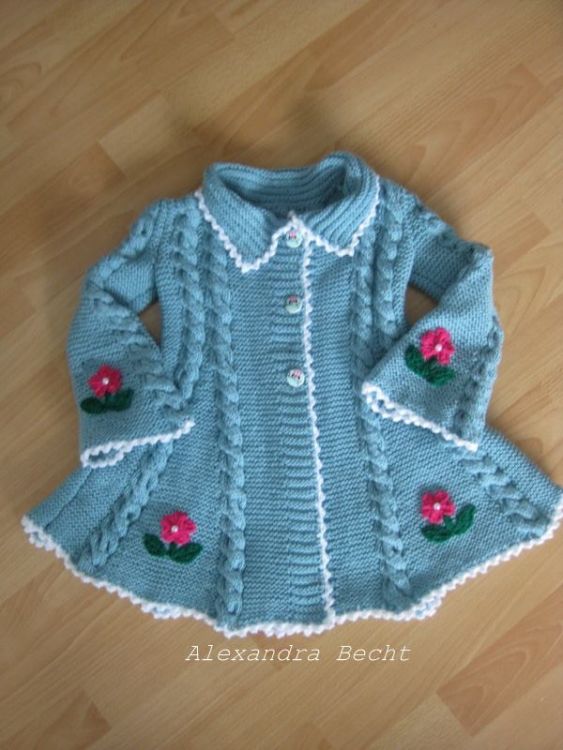 Eine Anleitung für ein romantisches Mäntelchen für kleine Damen. Geschrieben für Gr. 110, aber durch Hinzufügen von wenigen Maschen an den Seiten und ein paar Reihen ist auch eine Größe mehr drin, ohne groß rechnen zu müssen. Auch in jeder anderen Farbkombination und anders "geschmückt" wird sich jedes kleine Mädchen darüber freuen :) Dazu gibt es dann gleich noch das passende Mützchen passend für KU 50cm bis mindestens 55cm. Auch hier kann man bequem durch ein paar Maschen mehr am Beginn und Ende der Reihen und ein paar mehr in die Höhe die Mütze in jeder beliebigen Größe stricken :) Dies ist ein Sparangebot, beide Anleitungen sind auch separat erhältlich. (siehe Angebote) Im Vergleich sparst Du beim Kauf hier 1,10 Euro.