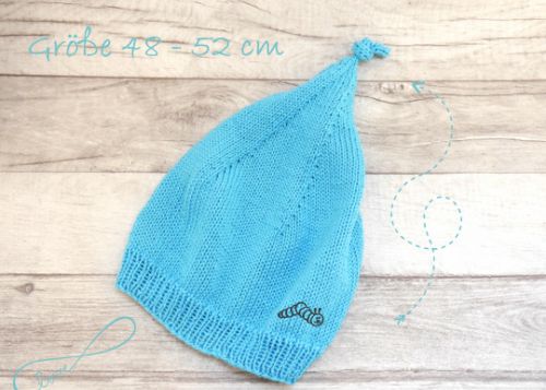Größe: 48 cm - 52 cm Alter: 2 - 4 Jahre. Die gestrickte Mütze kann auch durch Verwendung von dickeren oder dünneren Nadeln und entsprechender Wolle ganz leicht vergrößert oder verkleinert werden.