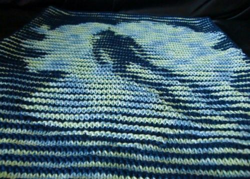 The technique of illusion or shadow knitting is very fascinating. If you look directly at the piece of knitting, all you see are stripes. However, if you look flat over the piece of knitting, you can see the image or pattern.